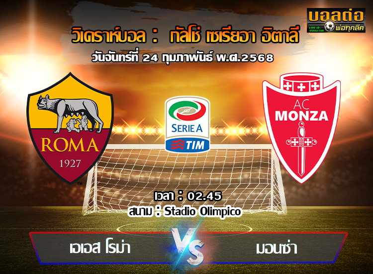 วิเคราะห์บอล เซเรีย อา : โรม่า -vs- มอนซ่า (24/02/68)