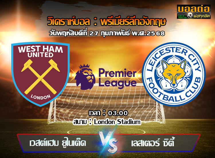 วิเคราะห์บอล พรีเมียร์ลีก : เวสต์แฮม -vs- เลสเตอร์ (27/02/68)