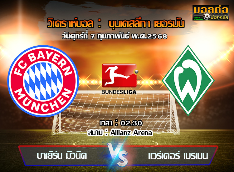 วิเคราะห์บอล บุนเดสลีก้า : บาเยิร์น -vs- เบรเมน (07/02/68)