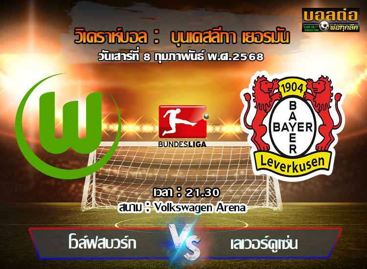 วิเคราะห์บอล บุนเดสลีก้า : โวล์ฟสบวร์ก -vs- เลเวอร์คูเซ่น (08/02/68)