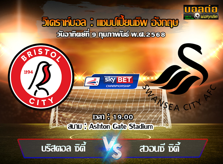 วิเคราะห์บอล แชมเปี้ยนชิพ : บริสตอล ซิตี้ -vs- สวอนซี (09/02/68)