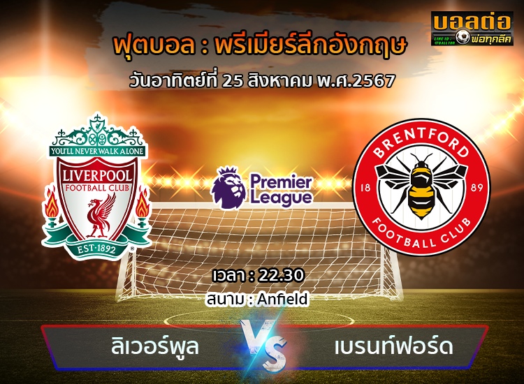 วิเคราะห์บอล พรีเมียร์ลีกอังกฤษ : ลิเวอร์พูล -vs- เบรนท์ฟอร์ด ( 25/08/67 )